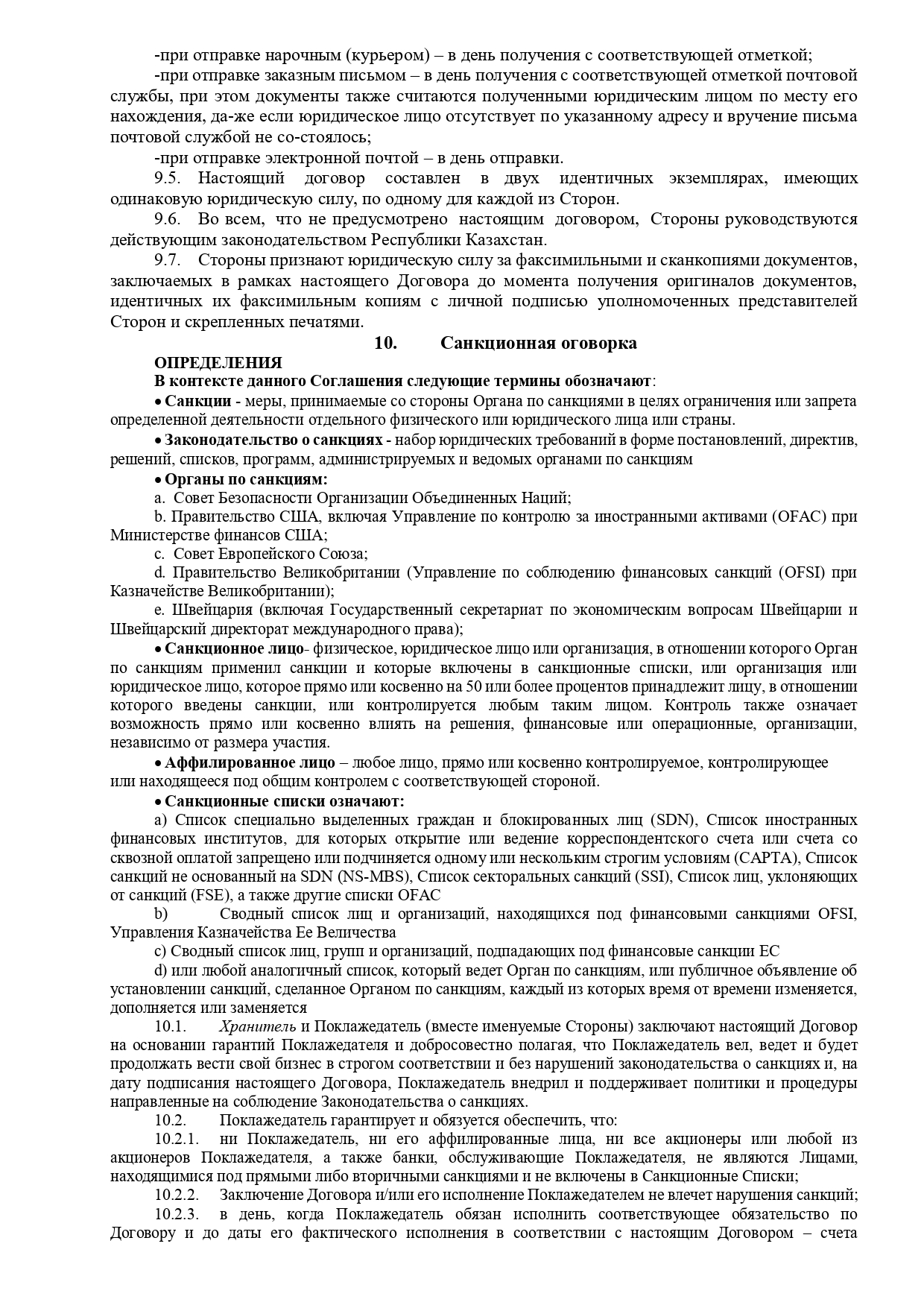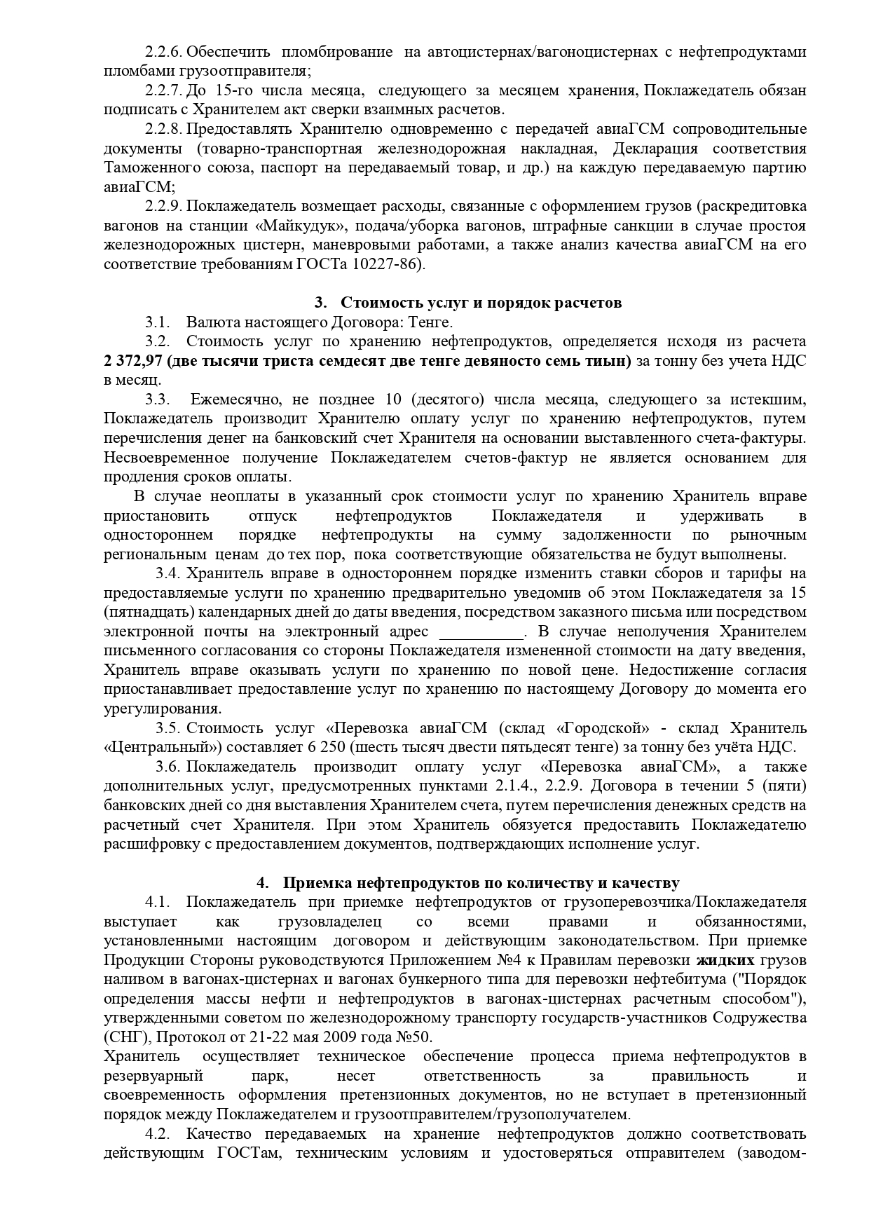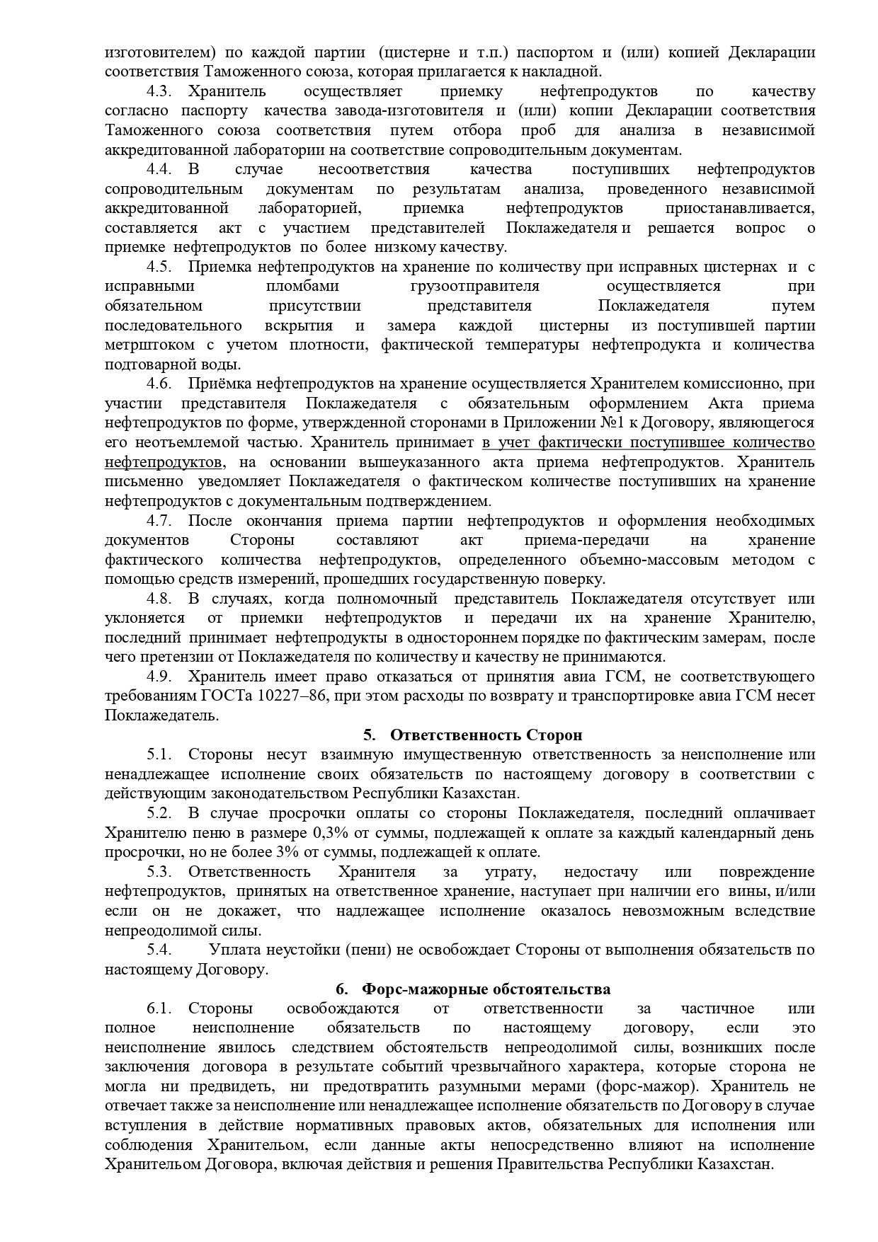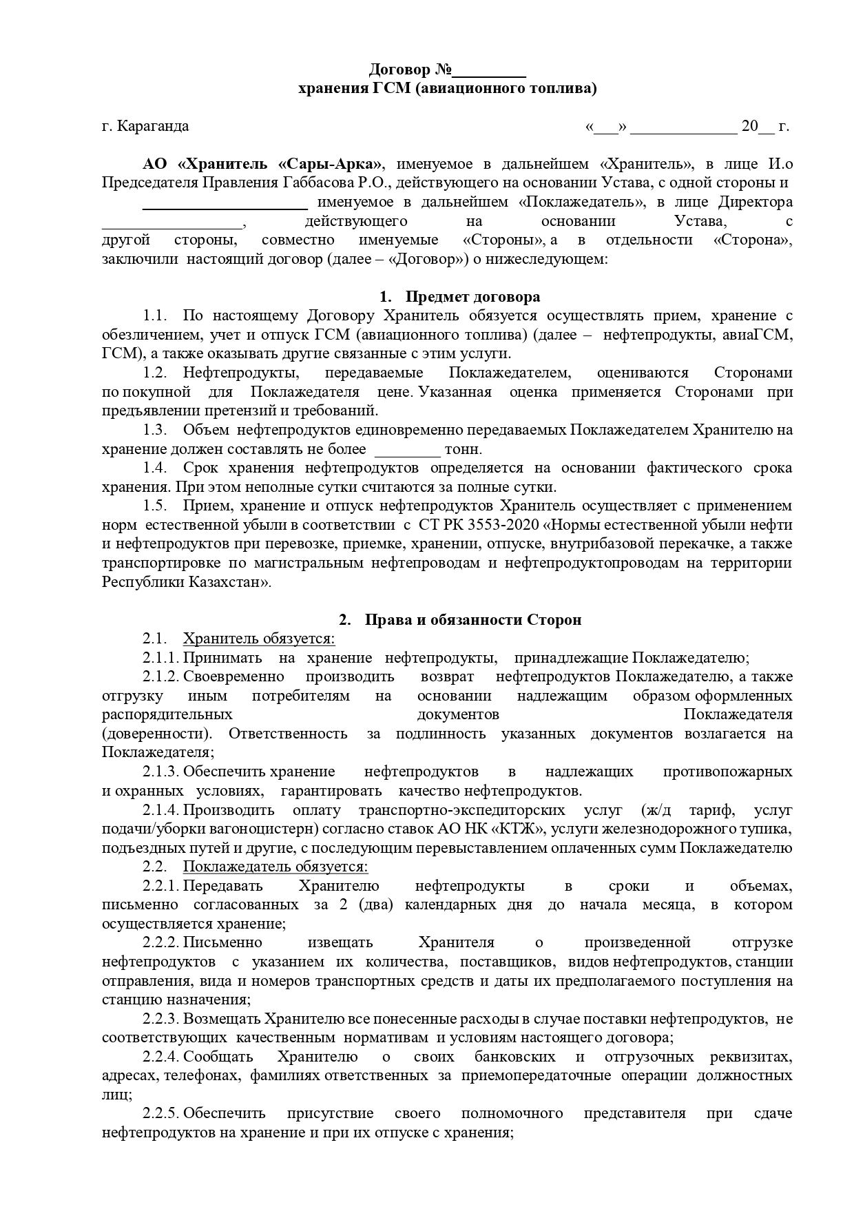 Шаблон договора на хранение ГСМ